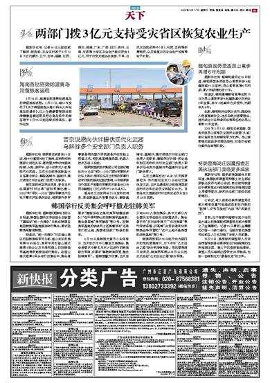 据新华社电 记者16日从财政部了解到,财政部、农业农村部于8月12日下达内蒙古、辽宁、吉林、福建、江西、湖北、湖南、广东、广西、四川、贵州、云南、甘肃等13省区农业生产救灾资金3亿元,用于对受灾地区在洪涝、干旱、台风灾后购买种子(苗)、化肥、农药等所需物资,以及修复灾后农业生产设施等给予补助。
