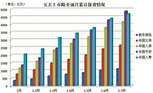 新快报讯 记者林广豪报道 近日,A股五大上市险企陆续披露2022年前7个月保费收入公告,合计实现保费收入1.75万亿元,同比增幅达到4.29%。中国平安保费规模今年首次登顶,五家公司寿险延续分化,财险三巨头车险保费增速维持稳健增长态势。