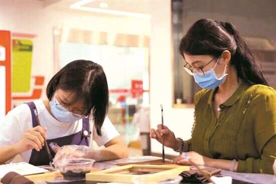 新快报讯 在东莞市中堂镇新时代文明实践中心艺术大讲堂里,一位女士在香云纱上写下一个“家”字,又写下“平安喜乐”四个字,她把心中最美好的愿望寄托在这片轻柔的香云纱上,希望家人平安开心。这是东莞市中堂镇共享文化活动 “申时茶会”上的一幕,当天的活动主题是非遗文化进社区,感受香云纱的魅力。
