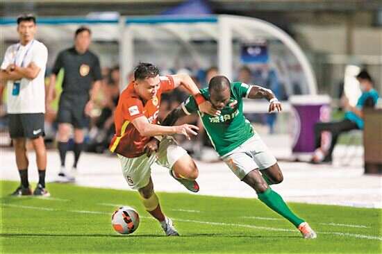 虽然现场没有球迷,但两队没有令线上收看比赛的球迷失望,进球如涌泉连珠一般接连冒出来。但毫无疑问,广州队完全占据了此役的主动。