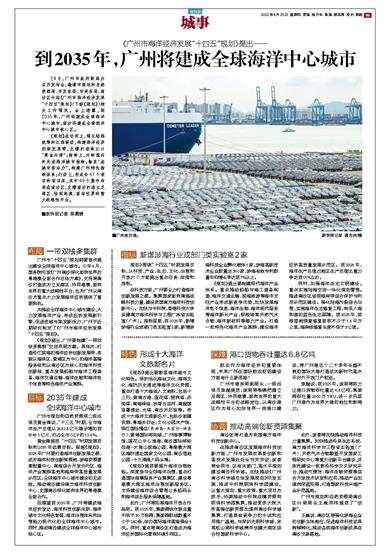 广州市“十四五”规划纲要首次提出建设全球海洋中心城市。今年6月,国务院印发《广州南沙深化面向世界的粤港澳全面合作总体方案》,支持将南沙打造成为立足湾区、协同港澳、面向世界的重大战略性平台,也为广州以南沙为重点大力发展海洋经济提供了重要契机。
