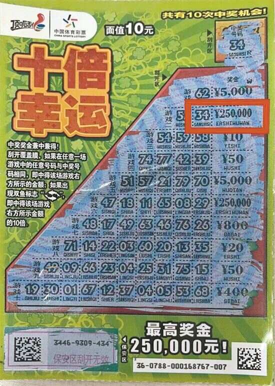原来,购彩当天恰逢周六,吴先生和朋友聚会后回家,路过东汇城,原本打算购物逛商场的他发现有体育彩票销售点,顶呱刮“十倍幸运”剩下5张,于是他随机选了一张“十倍幸运”,刮中了10元,转身发现3张“十倍幸运”被其他购彩者买走了,剩下最后一张,吴先生便将最后一张“十倍幸运”买了下来。没想到好运就此降临,当他刮开“游戏二”时,第二个号码“34”与中奖号码完全一致,再看看对应奖金,赫然为该票最高奖“¥250,000”,在反复阅读该票中奖规则确认中奖无疑后,吴先生兴高采烈与朋友分享中奖喜悦,在收获奖金25万元的同时,也为茂名贡献个人偶然所得税5万元。兴奋之余,吴先生暗叹:“好险啊,看来该出手时就得出手!来晚一步,大奖就是别人的了。”