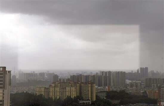 ■台风“马鞍”来临时的广州上空。新华社发