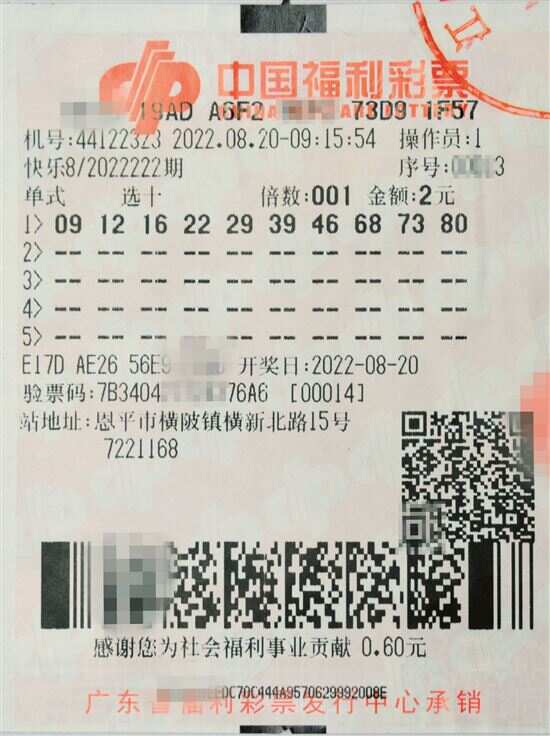 当晚开奖后,他通过手机查阅快乐8游戏开奖号码,胆拖票没有中奖,但是“选十”票上的号码09、12、16、22、29、39、46、68、73、80在20个开奖号码内,这表示他已中得“选十中十”奖金500万元,当时的激动心情无法用言语表达。