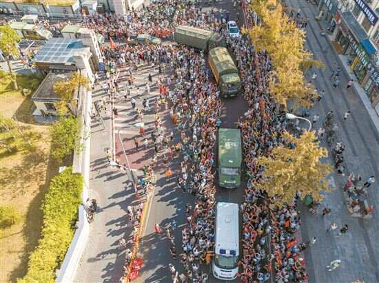 ■近日,重庆多地发生山火,在各方力量的共同救援下,目前重庆全部火场的明火已扑灭。8月28日,在重庆市北碚区,圆满完成此次山火扑救任务的300多名云南森林消防队员撤离重庆,众多重庆市民自发欢送。新华社发
