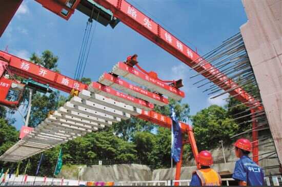 新快报讯 记者李佳文 通讯员张晨牧 施松潮报道 8月28日上午,广州地铁十一号线首条轨道在云台花园铺轨基地顺利铺设,标志着广州市第一条地铁环线正式进入轨道工程施工阶段。