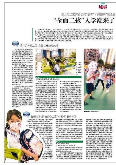 实际上,随着秋季学期开学临近,家长和孩子们既紧张又期待,紧锣密鼓地进行入学前最后的准备。然而,在这过程中,有一些二孩家长遇到了亲子教育方面的难题。为此,新快报记者走访多位二孩家长,了解孩子现状以及他们在入学前遇到的普遍问题,邀请校方一一答疑解惑,希望能帮助孩子和家长轻松开启人生新阶段。