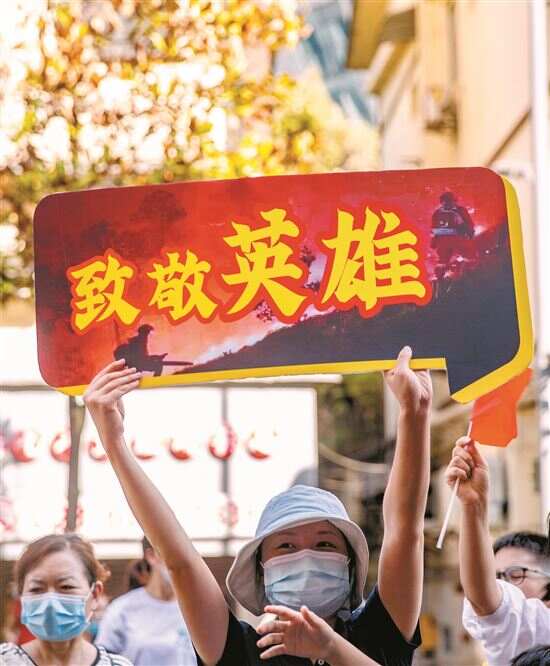 8月28日,在重庆市北碚区,群众自发来到道路两旁欢送森林消防队员。