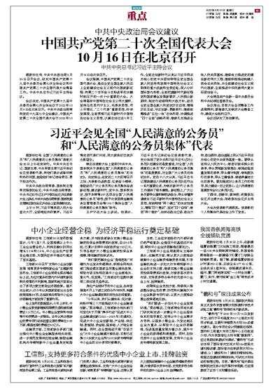 会议决定,中国共产党第十九届中央委员会第七次全体会议于2022年10月9日在北京召开。中共中央政治局将向党的十九届七中全会建议,中国共产党第二十次全国代表大会于2022年10月16日在北京召开。