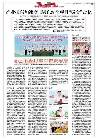 昨天签约的项目覆盖全市21个镇街,廉江市湛江鸡产业研究中心同时揭牌