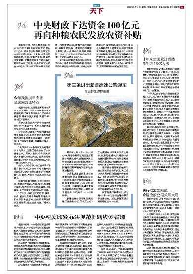 据新华社电 《经济参考报》8月30日刊发文章《中央财政下达资金100亿元 再次向实际种粮农民发放一次性农资补贴》。文章称,记者从财政部获悉,近日,根据党中央、国务院决策部署,统筹考虑农资市场价格走势和农业生产形势,中央财政下达资金100亿元,再次向实际种粮农民发放一次性农资补贴,统筹支持秋收秋种,缓解农资价格上涨带来的种粮增支影响,进一步调动农民种粮积极性。至此,2022年中央财政已分三批累计下达补贴资金400亿元。