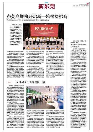 新快报讯 记者杨英杰报道 8月26日,2022东莞全球招商大会举行,七大战略性新兴产业基地向全球揭榜招商。当天上午,来自世界500强及中国500强等榜单企业、先进国家(地区)行业领军企业以及《东莞市产业链招商图谱》重点企业等40多位代表到达松山湖分会场,现场考察位于松山湖的松山湖生物医药产业基地、东部智能制造产业基地以及东莞新材料产业基地的建设与发展情况,多位企业代表表示有意向在此投资。