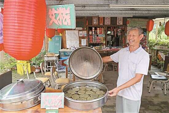 ■林国中乘着兰寨文旅发展东风打理起自家的小卖部,他说:“每天做的艾糍都能卖出去。”