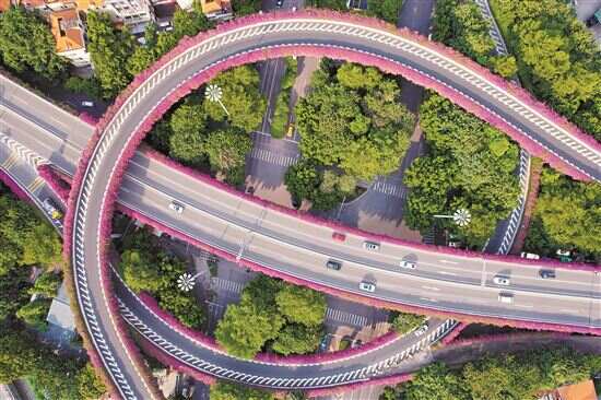 ■进入9月,广州的勒杜鹃逐渐进入盛花期,在海珠区东晓路高架桥上,阳光下的勒杜鹃格外鲜艳,把车道装饰成美丽的花廊。新快报记者 邓迪/摄影报道