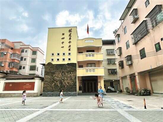 ▲葵蓬革命老区活动中心门前广场上正玩耍的孩童。