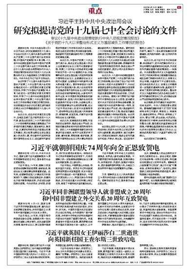 会议听取了十九届中央委员会向中国共产党第二十次全国代表大会的报告稿在党内外一定范围征求意见的情况报告,听取了《中国共产党章程(修正案)》在党内一定范围征求意见的情况报告,听取了十九届中央纪律检查委员会向中国共产党第二十次全国代表大会的工作报告稿征求意见的情况报告,决定根据这次会议讨论的意见进行修改后将这3份文件稿提请党的十九届七中全会讨论。