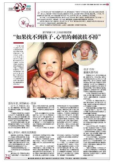 时光荏苒。2009年,邓惠东又生下一个男孩。小儿子刚满百日的时候,她给孩子拍了一组照片。不对比不知道,她赫然发现,此刻的小儿子和当年的叶锐聪长得一模一样。可是,这一幕却触碰了她心中最脆弱的地方,抚摸着照片泪流满面:“我的大男孩该3岁了,他过得好不好?吃得饱吗?穿得暖吗?你到底在哪里?”