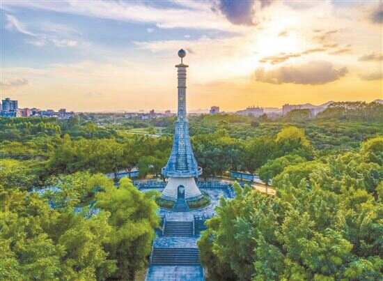 北回归线标志塔 位于广州市从化区太平镇油麻埔村三甲子坡地上(北纬23°26’28”44东经113°28′ 56.16),是世界上南北回归线上高度最高、规模最大的一座标志塔。(李晓彤/摄)