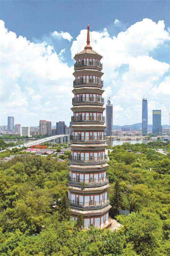 琶洲塔 位于海珠区琶洲村琶洲塔公园内,建成于明万历二十八年(1600年),外观9层内分17层,高50余米。“琶洲砥柱”被列为清代羊城八景之一。
