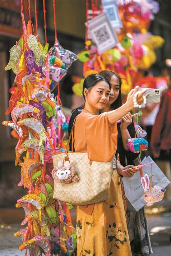 ■在广州经营了28年的手工灯笼店“天就行”成网红打卡地,不少市民过来拍照打卡。新快报记者 邓迪 郭思杰 黄彦桃 林里/摄