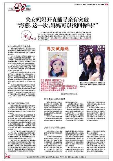 前段时间,黄锦虾又开始自己摸索着开直播,直播时不仅会发布自己的寻女信息,也会帮一些其他的家长发布寻子信息。“我过去很怕与人交往,没想到今天能成为直播主。”她苦笑着说,为了找到海燕,她可以接受任何挑战,去面对任何困难。