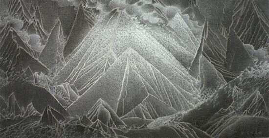 ■仇德树 《裂变-雪域峰碑》 宣纸、丙烯、画布 222cm×430cm