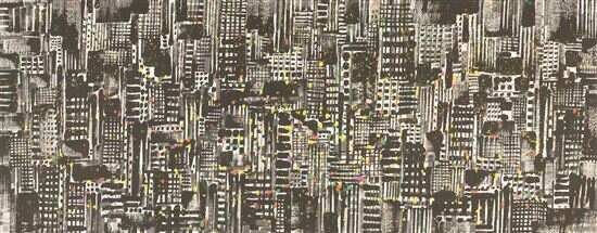 ■吴冠中 《都市之夜》 纸本水墨设色 145cm×368cm 中国美术馆藏