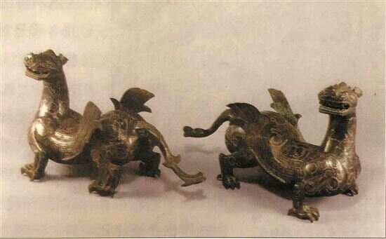 ■河北平山战国中山王墓出土具有西亚风格的错金银带翼神兽雕像,可能与中山国为西方移民“白狄”所建的记载有关。