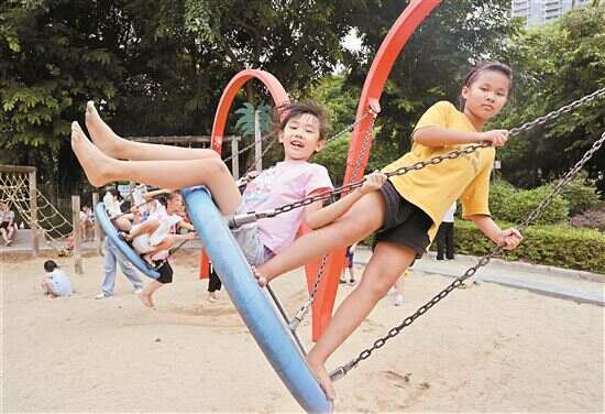■9月11日,中秋小长假第二天,在广州白云儿童公园内,孩子们正在开心地荡秋千。新快报记者 孙毅/摄