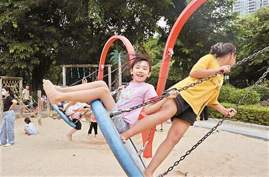 ■9月11日,中秋小长假第二天,不少家长带着孩子们来到儿童公园,让孩子在玩耍中身心融入大自然,体验与众不同的生活乐趣。 新快报记者 孙毅/摄