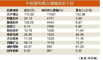 当前,市场上有多家新能源车企的销量突破万辆,新旧势力混战的局面已然形成。其中,比亚迪遥遥领先于其他车企,8月销量达17.4万辆。从中报净利润增幅来看,据同花顺数据,锂电新能源概念成绩斐然,319家锂电上市公司中就有88家业绩增幅翻番,其中,天齐锂业、超频三、南都电源和盛新锂能等8家公司涨均超10倍。天齐锂业净利润同比增幅高达119倍居首。9月10日消息,电池级碳酸锂价格再次逼近50万元/吨关口,业内人士分析,锂价格高企带动A股相关行业景气度,且未来一段时间的行业景气度预计保持领先。