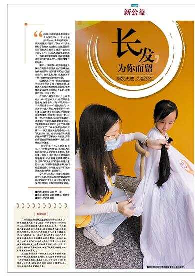 记者获悉,广州一民间公益组织于2016年开启了爱心捐发活动,募集真人长发并筹资制作成假发,免费赠送给因为患上癌症而光头的、有需要的3岁-17岁女孩。