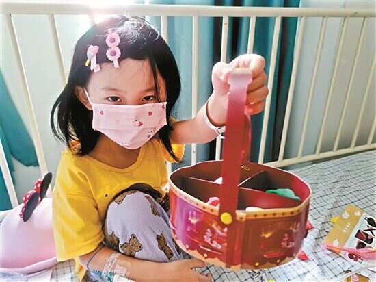 5岁的淇淇喜欢画画和做手工,病房里有她做的剪贴画、水钻贴纸公主,今年中秋前,她用粘土和纸盒做了“月饼”送给大家,过去淇淇喜欢和妈妈分享在课堂学到的歌或有趣的事,现在相比于以前安静了许多。