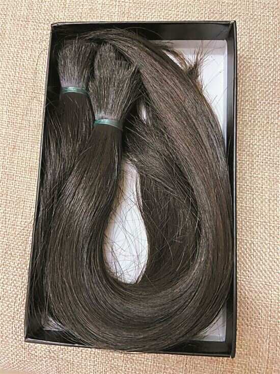 ■李文婷剪下的长发又黑又亮。