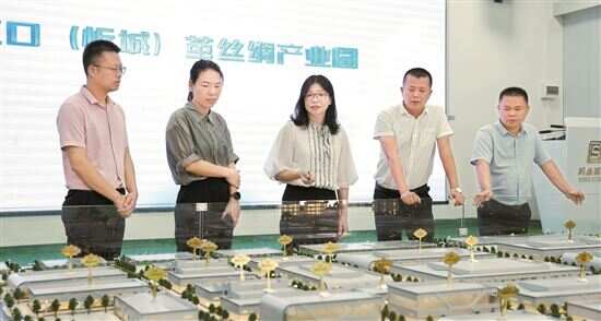 ■叶茵茵带领工作组成员到三江口(忻城)茧丝绸产业园调研项目建设情况。