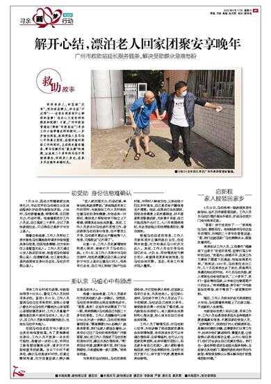 明明有亲人,却坚称“没有”,明知家在哪儿,却总说“不记得”……这背后到底有什么牵绊和故事?他内心又有怎样的顾虑和犹疑?日前,广州市救助管理站(简称“市救助站”)寻亲工作小组带着这样的疑问,一步步抽丝剥茧,找到受助人员马伯心中的真正担忧,在做好临时救助工作的同时,主动延长服务链条,帮马伯解开他“最头痛”的难题,让流浪二十多年的马伯不再继续漂泊,回到亲人身边,在家乡开启晚年幸福时光。