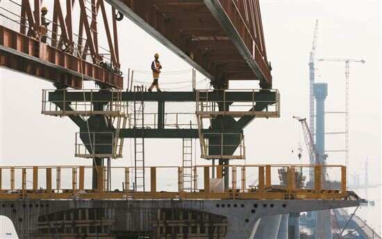■在珠海和江门之间的海面上,工人正在黄茅海跨海通道高栏港大桥西塔上作业。黄茅海跨海通道是港珠澳大桥的西延线。建成后将与港珠澳大桥、深中通道、南沙大桥、虎门大桥等共同组成大湾区跨海跨江通道群。 新快报记者 李洁军 陈昆仑 夏世焱/摄