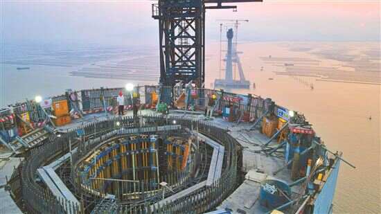 雷文康和徐明建两人都为自己能够参与建设而自豪。他们在高栏港大桥西塔这边干活,最大的感受就是这桥塔造型特别,是中间收窄的小蛮腰形状,不像别的桥塔那样是直上直下的。这种别致的造型他们浇筑起来要费多点功夫,慢慢收窄就要每做好一段再重新搭木板。“我来时才三十多米,现在都一百多米了,速度还是很快的。”徐明建感慨地说。