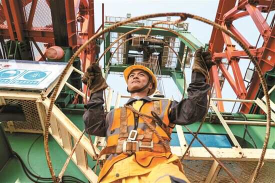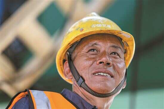 徐明建今年4月才到工地上,呆的时间不长,平时在工地上什么活都干,要吊装就去挂铁钩,要浇筑水泥就上桥塔。“别看现在桥塔有一百多米了,但我上去干活就像平地上一样,没觉得有啥不一样。”徐明建表示自己已经习惯了这样的工作。