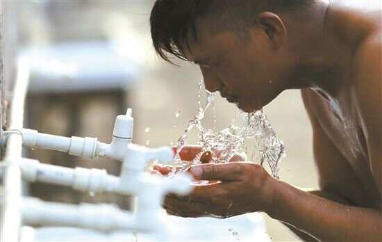■下班后的建设者享受清凉一刻。