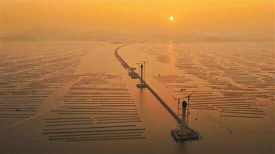 对于雷文康和徐明建来说,在海上工作跟陆地上并没什么区别,工棚就在施工的桥塔旁边,虽然是在海上搭建的,但跟岸上有长长的栈桥相连,大货车都能在上面跑。