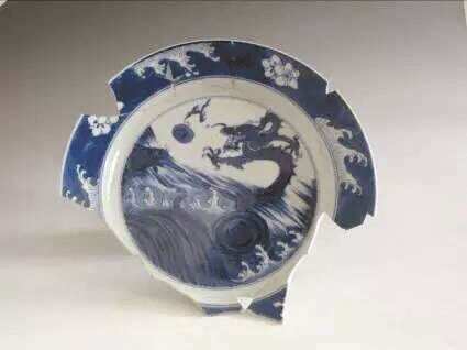 ■清代青花鲤鱼龙纹盘(南越国宫署遗址出土)