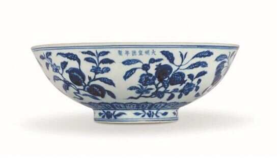 ■明宣德,青花折枝花果纹大盌,佳士得香港2022年秋拍