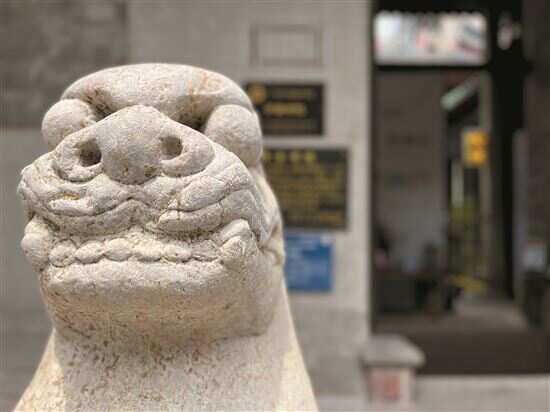 正午的阳光打下来,让这座伫立在十字路口上的岭南宗祠建筑很是抢眼,门口两头看上去虎里虎气萌萌哒的神兽“恪尽职守”地蹲踞两旁,马路上车水马龙,时代的脚步和时间的印记似乎都在两只神兽的凝视中匆匆而过……