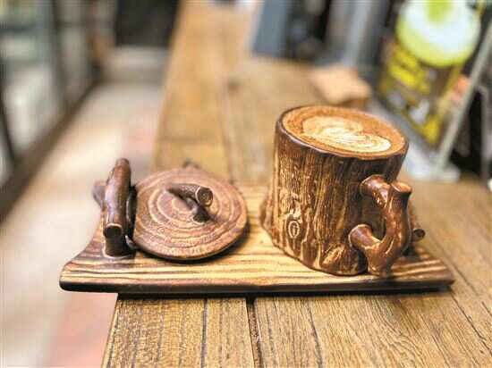 ■青云书院“拙见”咖啡馆的加了肉桂粉的拿铁“心安之处”很有仪式感地盛在仿木容器中。