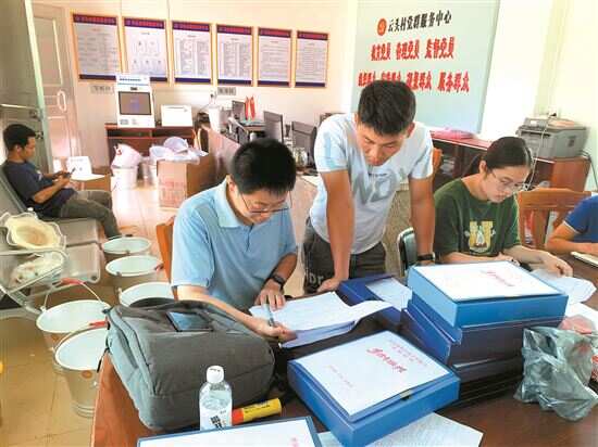 ■吴晓(左一)在和安镇云头村检查台账资料。