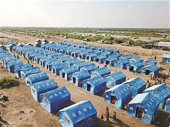 马德利镇助理专员努尔·艾哈迈德告诉新华社记者,这处营地临时安置近百户共581名受灾民众,其中包括379名儿童,用中国援助帐篷搭建的临时营地,在马德利所在的伯丁地区还有很多。