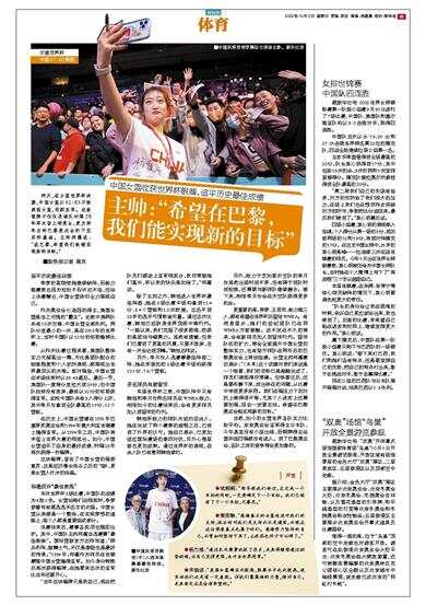 昨天,在女篮世界杯决赛,中国女篮以61∶83不敌美国女篮,收获亚军。这枚银牌不仅仅是球队时隔28年再次登上领奖台,更为两年后的巴黎奥运会打下坚实的基础。主帅郑薇说:“在巴黎,希望我们能够实现新的目标。”