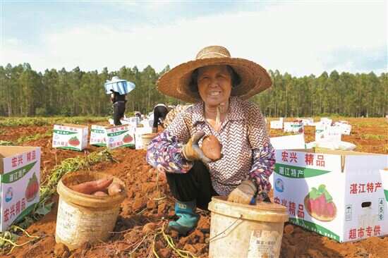 ①2022年7月份,湛江雷州杨家镇的村民正在收获红薯,这儿的红薯远近闻名,是雷州市红薯产业融合发展的重要组成部分。