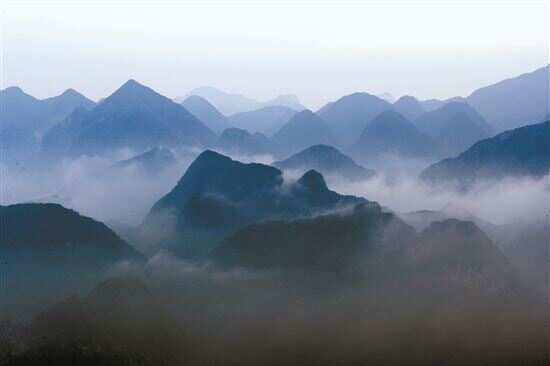④2020年5月23日,清远市阳山县靘雾山晨雾缭绕,延绵起伏的山脉尽显诗情画意。